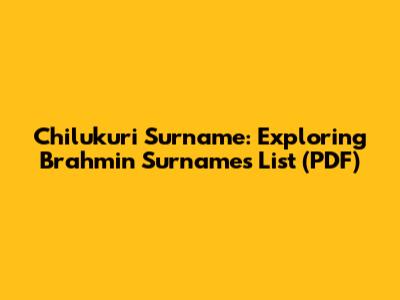 Chilukuri Surname: Exploring Brahmin Surnames List (PDF)