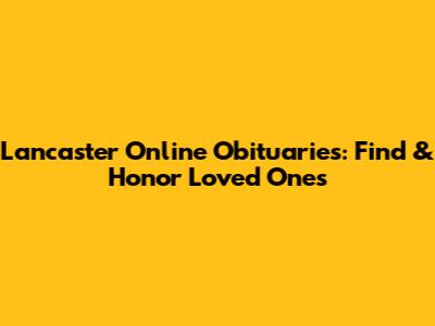 Lancaster Online Obituaries: Find & Honor Loved Ones
